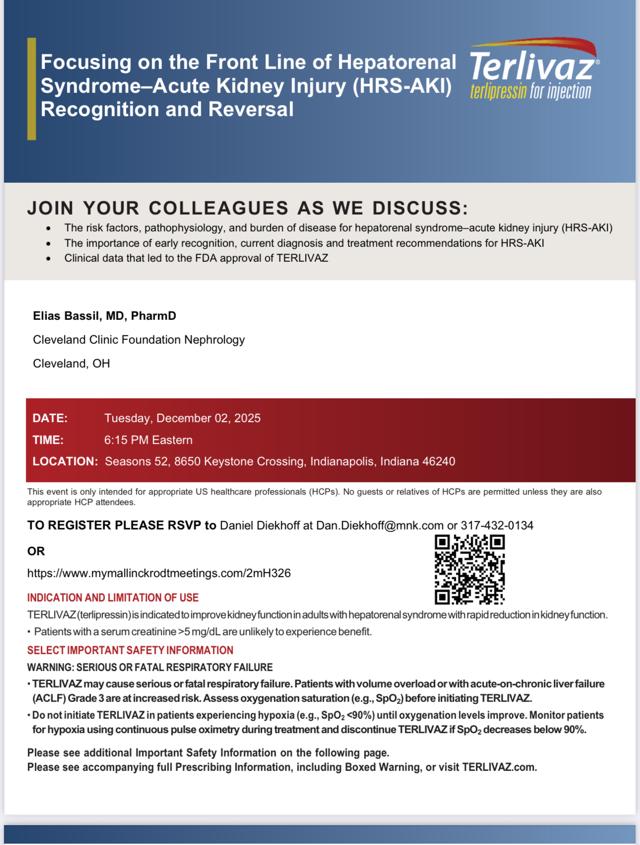 TO REGISTER PLEASE RSVP to Daniel Diekhoff at Dan.Diekhoff@mnk.com or 317-432-0134