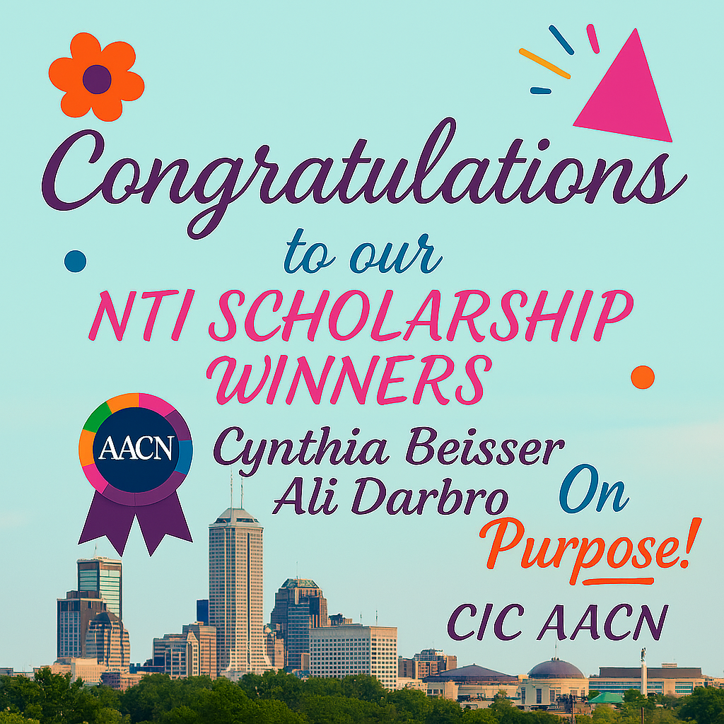 Let's congratulation our CIC AACN 2026 NTI scholarship winners! Cynthia Beisser won 1st place for $1000 scholarship reimbursement for live NTI conference fee being held in San Diego, California. 2nd place goes to Ali Darbro for $415 scholarship reimbursement for fee of virtual NTI conference or for reimbursement of fees for the live conference